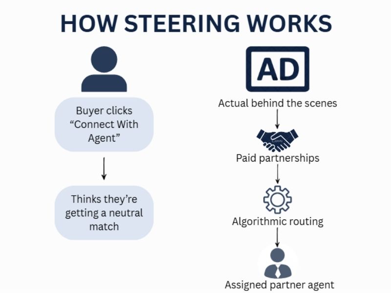 A recent class action lawsuit filed against Zillow and Zillow Home Loans alleges that the company used its platform to steer buyers toward affiliated agents and lenders. The suit claims that Zillow’s mortgage promotions and referral pathways created a situation where the consumer believed they were simply following the next step in the home search process, but in reality, the system routed them toward specific partners with financial ties.